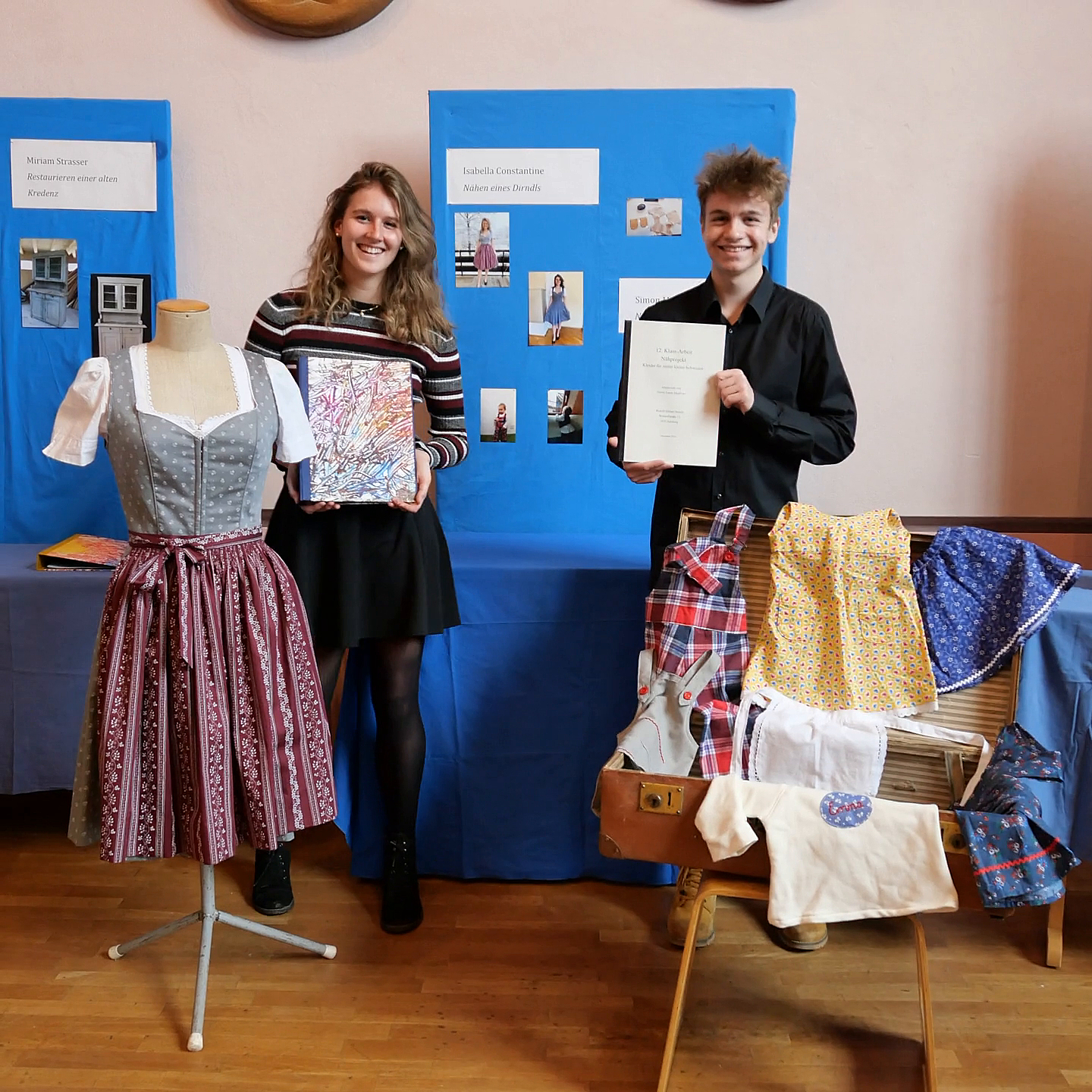 Jährlich sind die praktischen Jahresarbeiten der Schülerinnen und Schüler der 12. Klasse ein Zeichen dafür, dass ihre Schulzeit bald vorüber ist. Die Jugendlichen präsentieren ihre Jahresarbeit, bestehend aus einer schriftlichen Arbeit und einem handwerklich-künstlerischen Arbeitsstück, normalerweise vor einem Publikum im Dorothea Porsche Saal im Odeïon. In diesem Jahr waren sie selbst ihr Publikum und erzählten über den Weg der Idee hin zu ihren Werkstücken mit all den Herausforderungen, denen sie sich stellten.