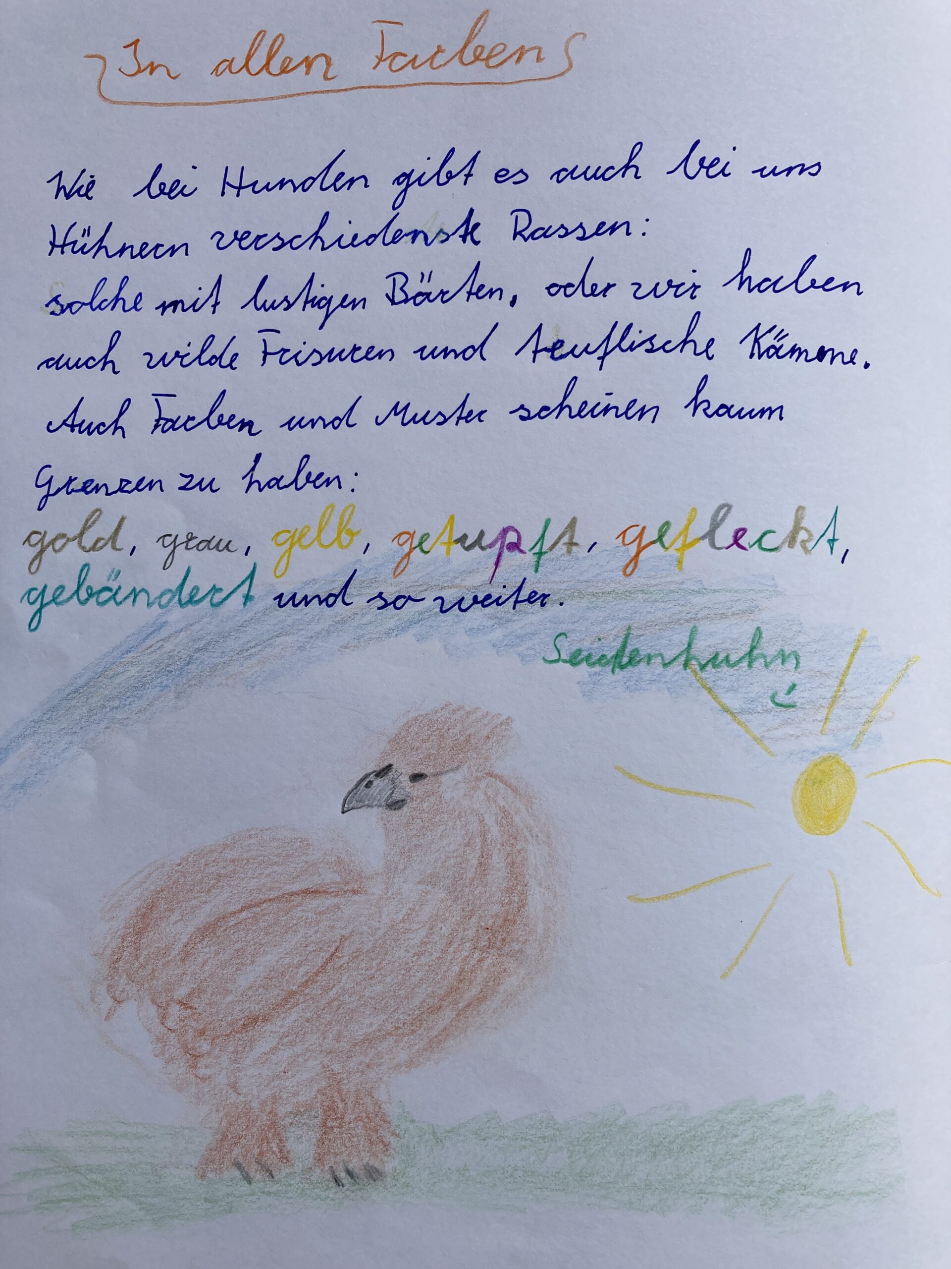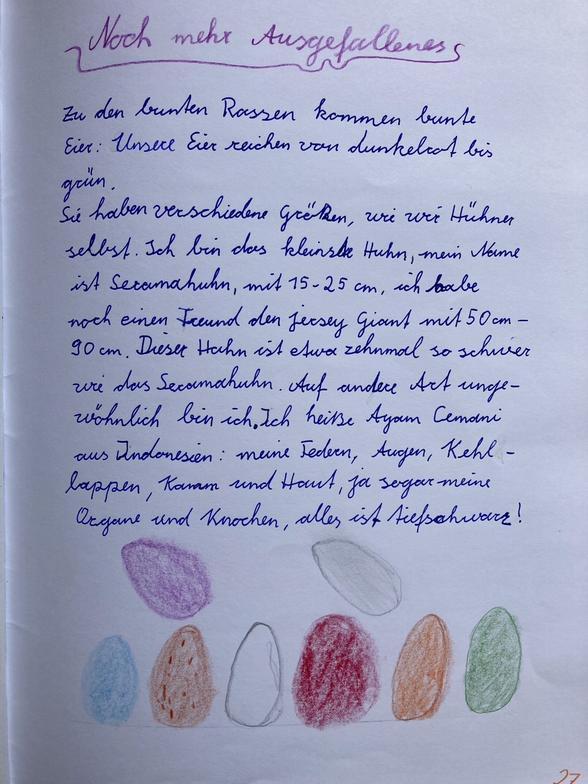 Die Arbeit machte den Kindern Freude, sie arbeiteten sehr selbstständig und fleißig. Wir hatten einen Hut, aus dem jeden Tag ein paar Kinder gezogen wurden und der Klasse von spannenden Forschungsergebnissen berichten durften. Das war ein beliebtes, zusätzliches Highlight. Stolz erzählten die Kinder einander, was sie Neues von ihrem Tier erfahren haben, zeigten ihre schöngestalteten Heftseiten oder lasen ein selbstgeschriebenes Gedicht vor.