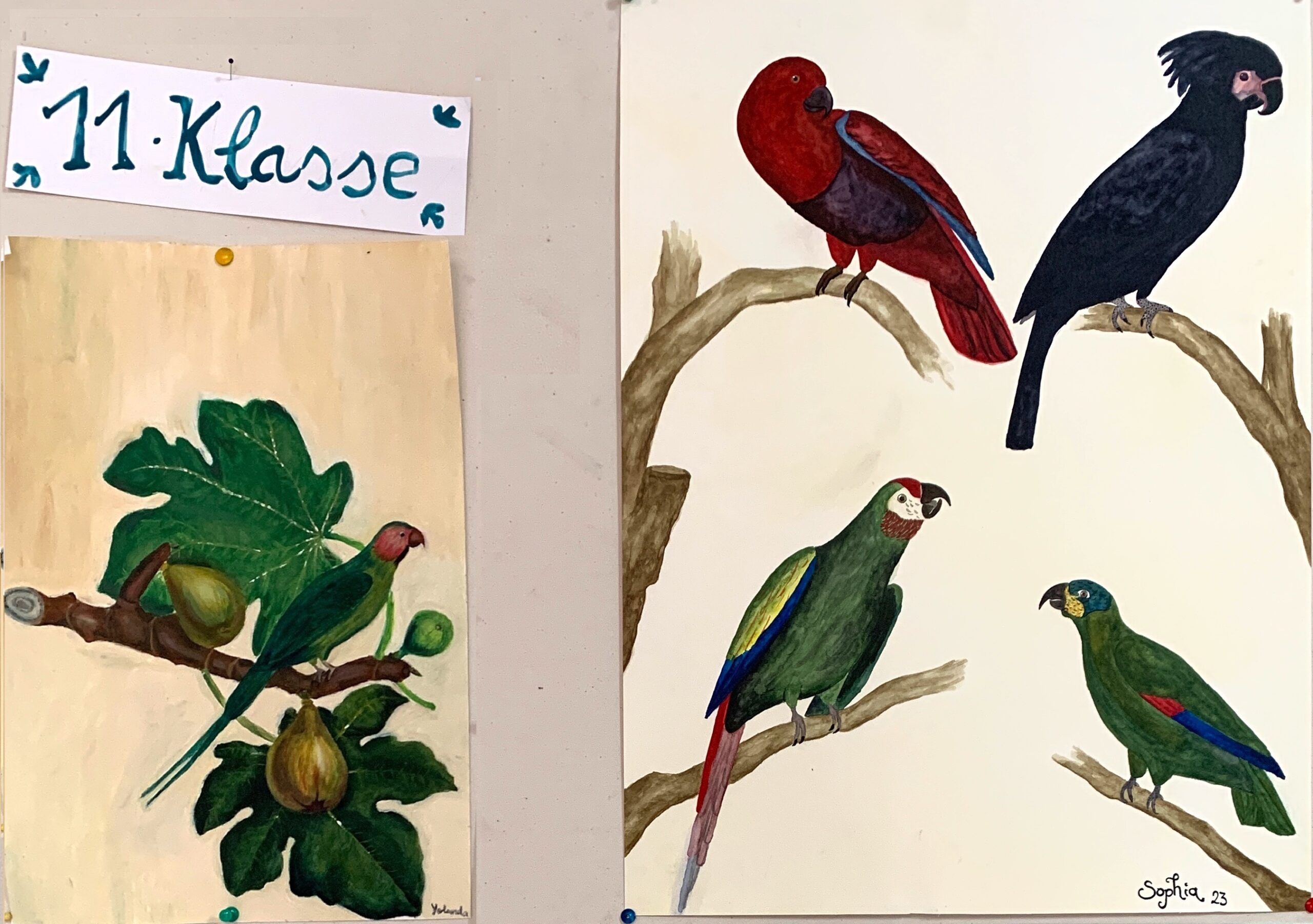 Ausstellung der 11. Klasse Zeige grösseres Bild Ausstellung der 11. Klasse Bildnerische Erziehung mit Hemma Treppo Die 11. Klasse versuchte sich heuer an realistischen Darstellungen von Tieren und Pflanzen. Die Bilder wurden in Aquarell oder Öl gemalt. Manchmal wurden die Medien auch gemischt.