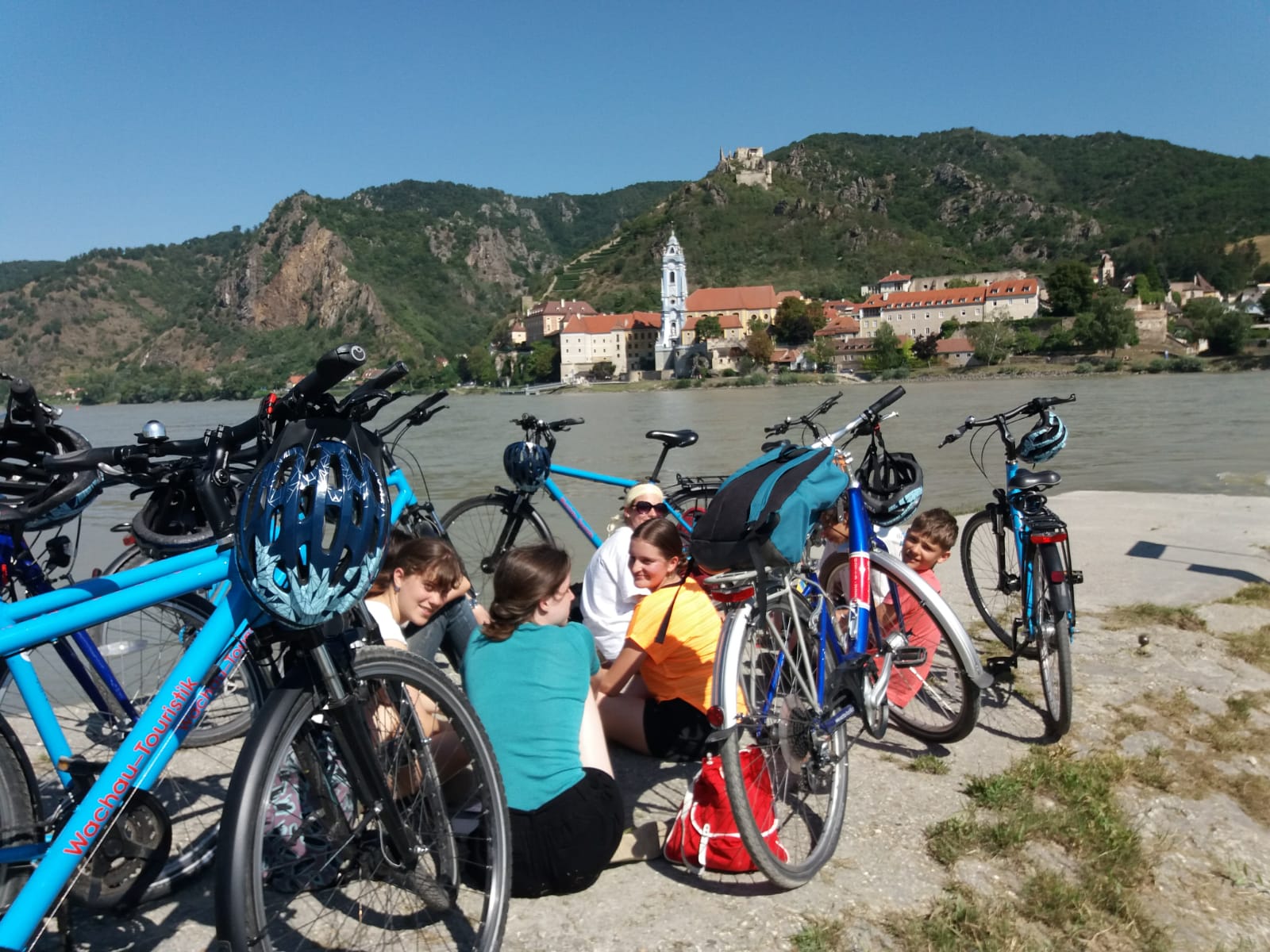 Dazu lagerten wir am Gelänge einer alten Ruine in der Nähe der Wachau. Die Tage verbrachten wir wandernd, radelnd oder zeichnend in der wunderbaren Landschaft der Wachau: den ganzen Tag im Sonnenschein, durch knorrige Föhren-Eichenwälder oder an der Donau entlang, durch alte Dörfer, Weinreben und Marillenbäume.