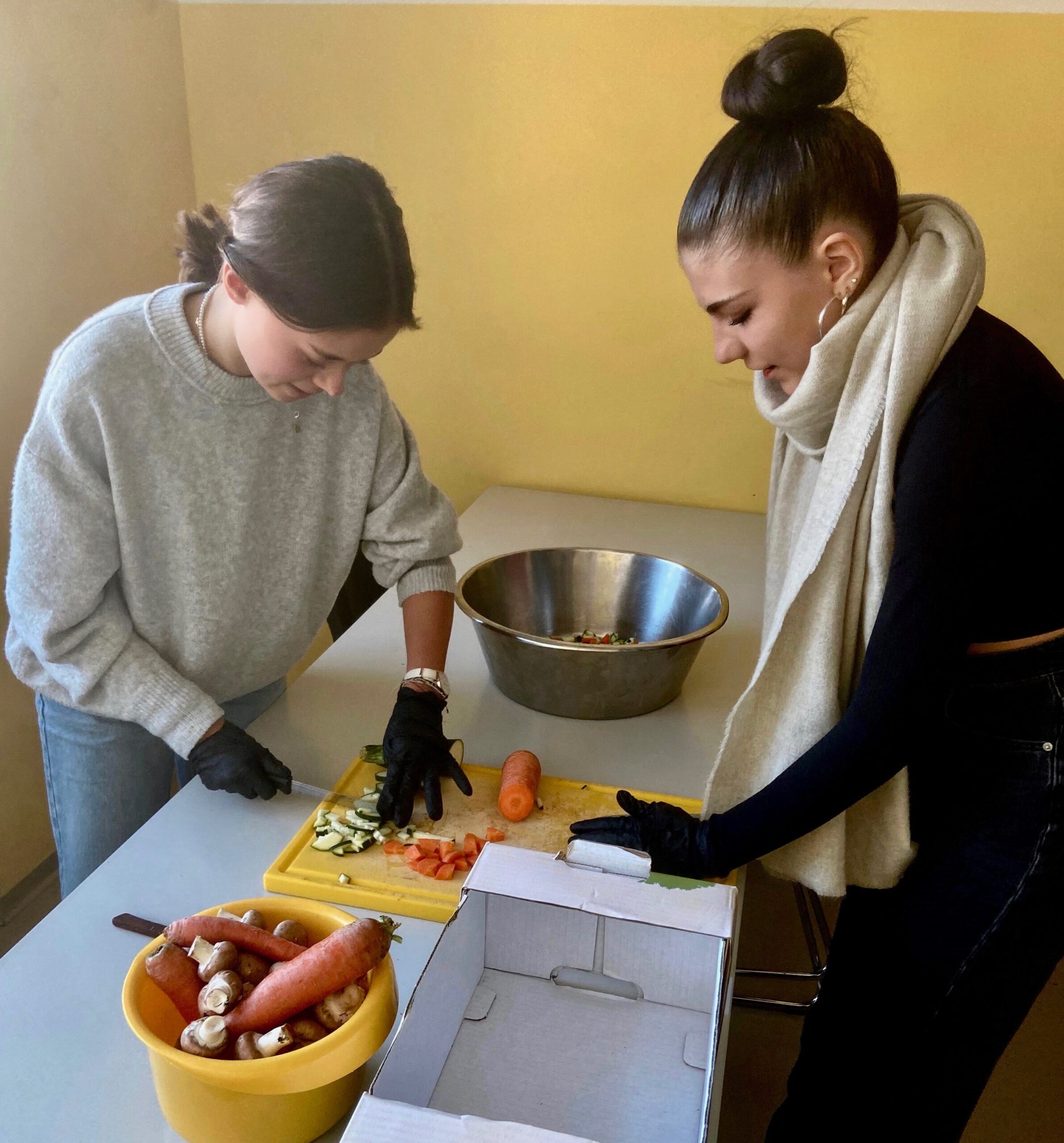 - Soziale Kochaktion: Die SchülerInnen haben zusammen Mahlzeiten für die Obdachlosen zubereitet.