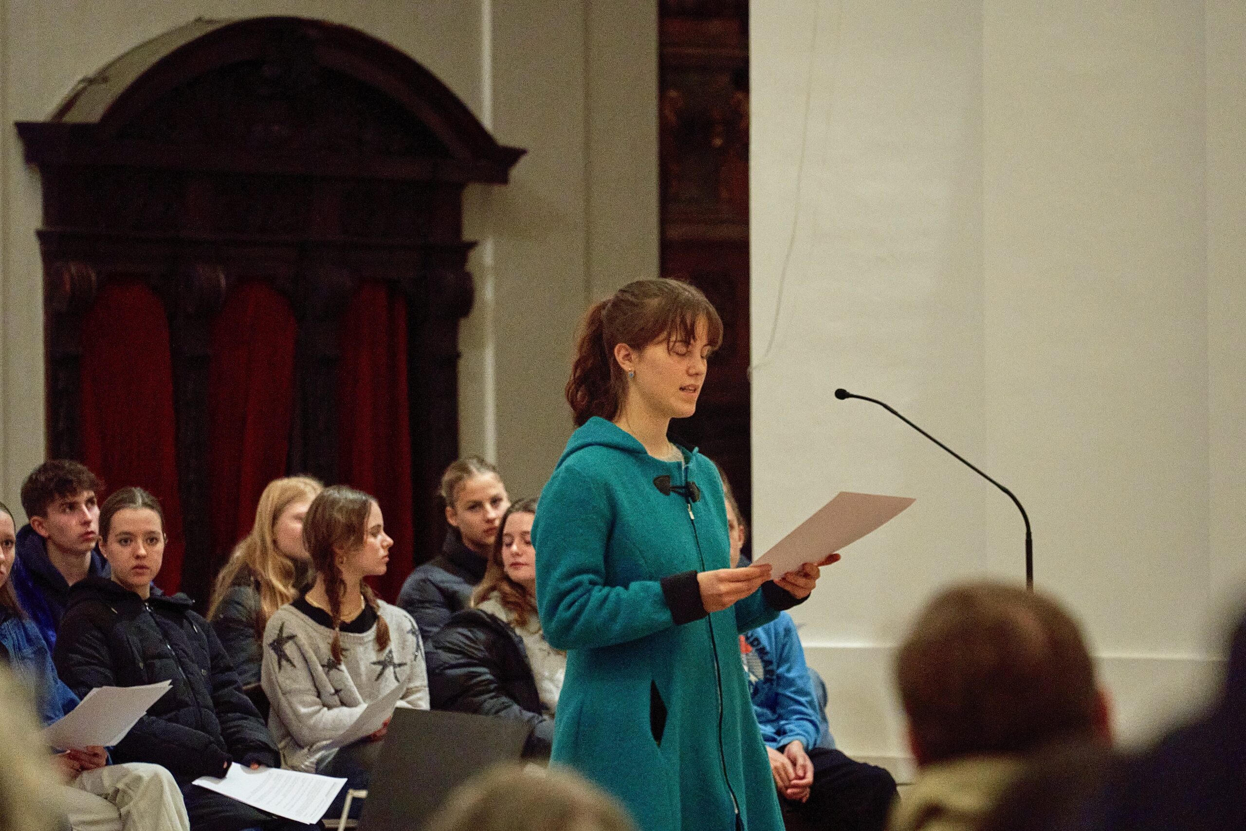 Seit 2003 fand die von unserer Schule organisierte Gedenkfeier jährlich um 18 Uhr am Alten Markt statt, seit einigen Jahren als erster Teil des Kaddisch, dessen zweiter Teil jeweils um 19 Uhr in der Kollegienkirche beginnt. Der Anlass des Gedenkens hatte jedoch seit dem Ausbruch des Gaza-Krieges eine dramatische Aktualisierung erfahren. Deshalb führten Bedenken und Ängste dazu, dass wir auch unsere Veranstaltung in die Kollegienkirche verlegten.