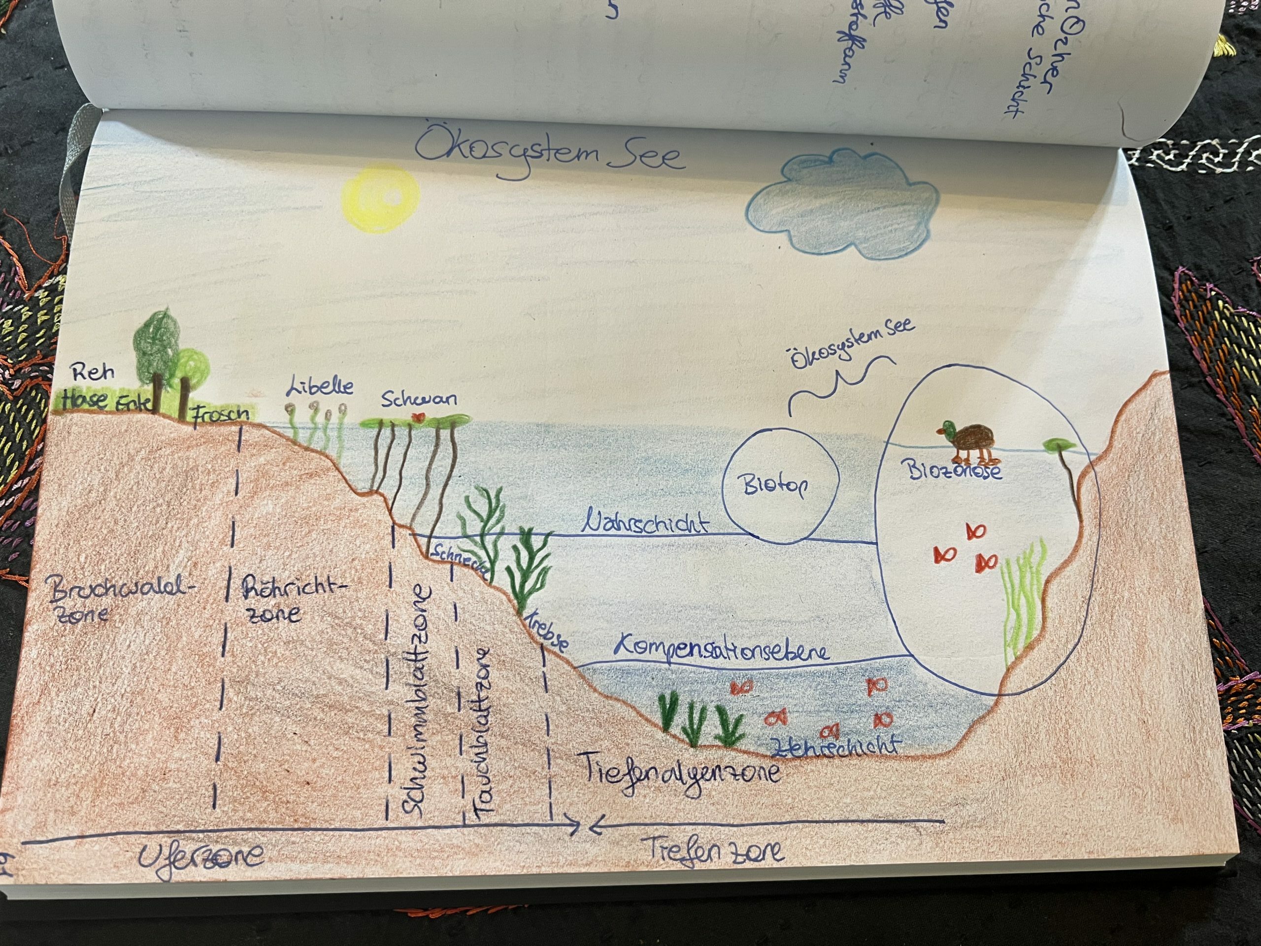 Unsere Themen waren: Wälder, Auen, Forst, Seen, Flüsse, Renaturierung, Gebirge, Wiesen, Moore, Hecken, Böden, Bienen, Pilze, Agrarlandschaft sowie Naturgärten. Wir erwandern diese Ökosysteme und hatten genug Zeit, uns mit diesen gut auseinander zu setzen. Jede(r) SchülerIn wählte ein Thema aus und referierte vor Ort, wo alles gut zu sehen war. Viel gab es zu entdecken, viel wurde besprochen, Wichtiges wurde notiert und am Abend ins Praktikumsbuch geschrieben und mit Fotos und Zeichnungen ergänzt.