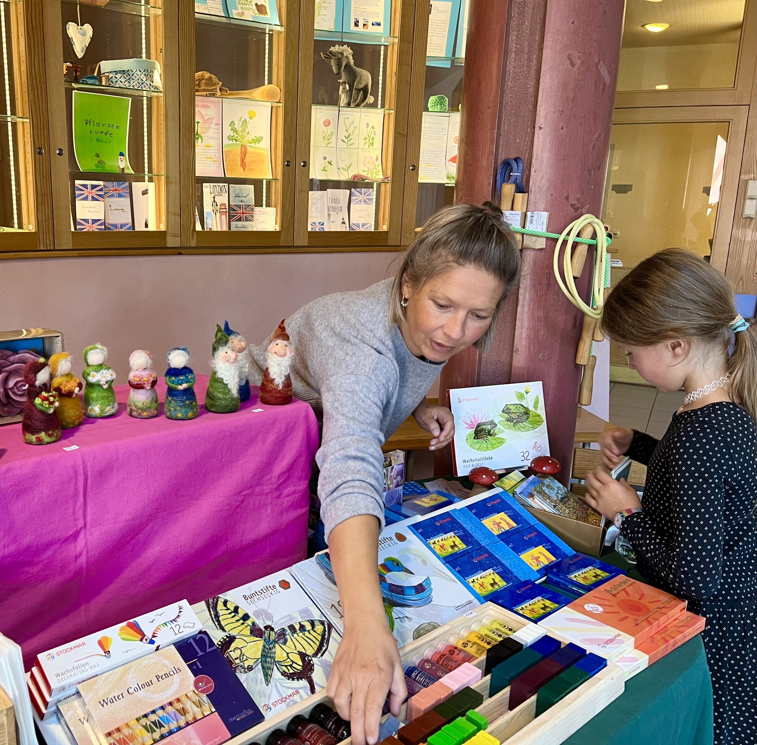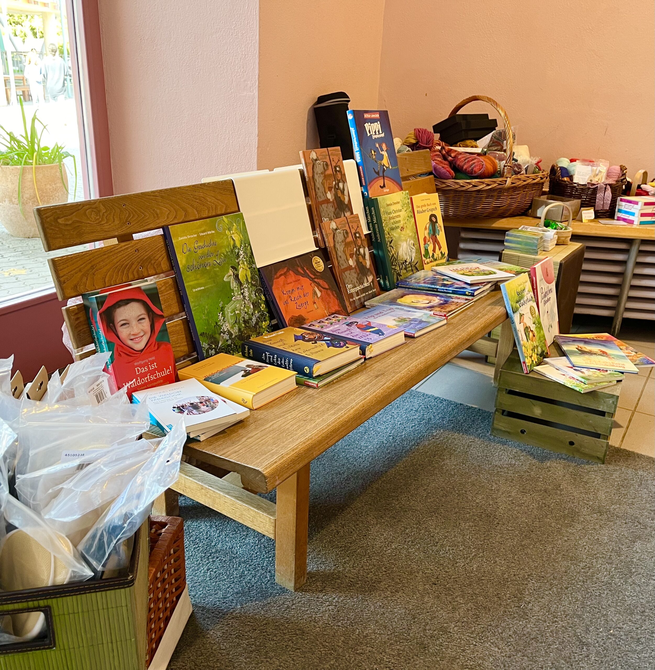 Es gibt Bücher, Eurythmiepatschen, Wachsmalblöckchen, Buntstifte und viele liebe Kleinigkeiten, schaut vorbei!
