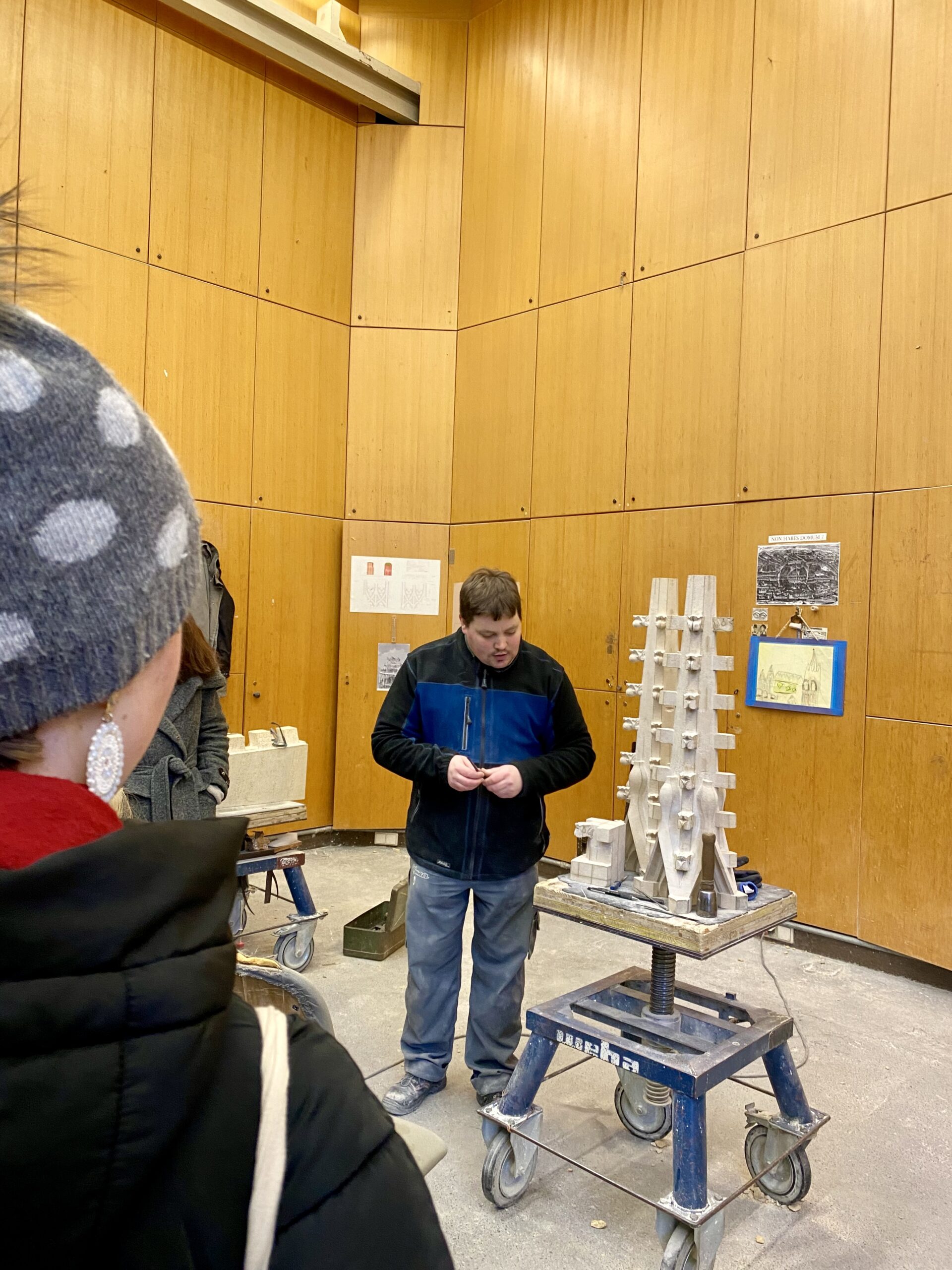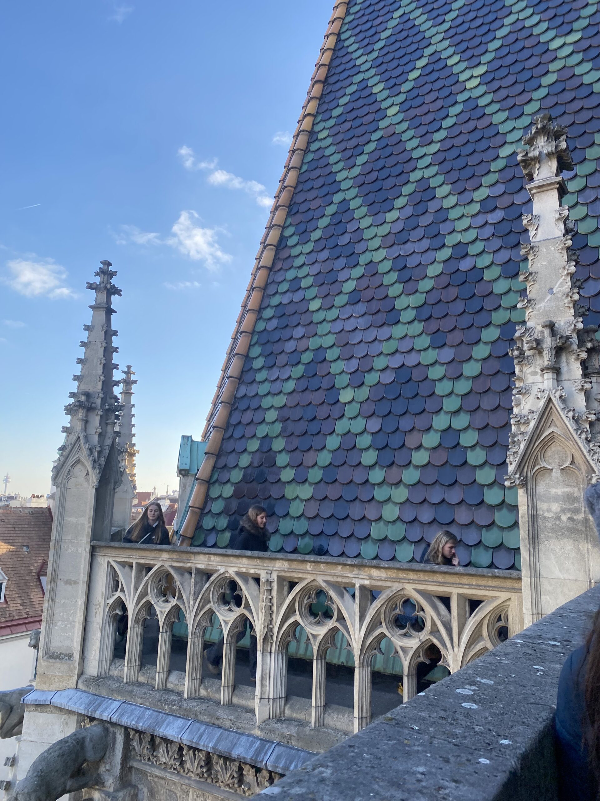 Der erste große Programmpunkt war gleich ein Highlight: Wir hatten eine Spezialführung im Stephansdom und durften Bereiche sehen, die normalerweise für Besucher gesperrt sind, die Bauhütte, wo uns ein Steinmetz unter anderem die Restauration einer Verzierung des Domes und den Dachstuhl zeigte– das war wirklich etwas Besonderes.