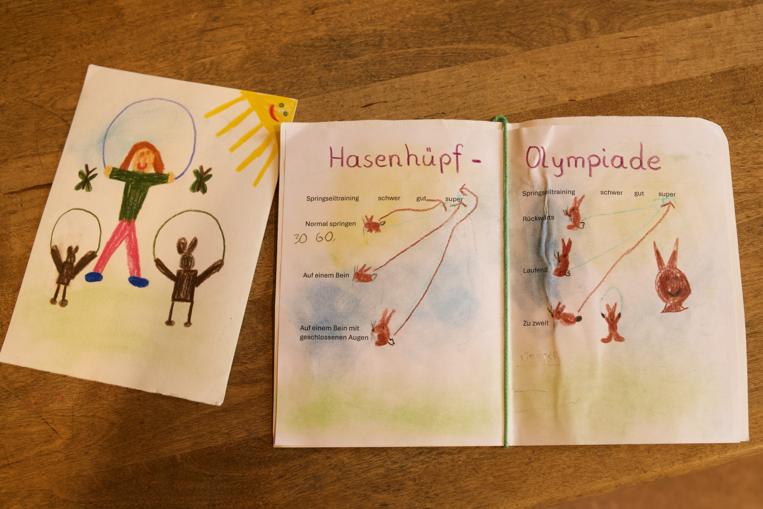 Die 2. Klasse trainiert gerade jeden Morgen für die Hasenhüpfolympiade. Viele Disziplinen werden mit großer Freude eifrig trainiert. Danach gehts wieder in die Klasse. Nach ausgiebiger Bewegung klappt das Rechnen umso besser!