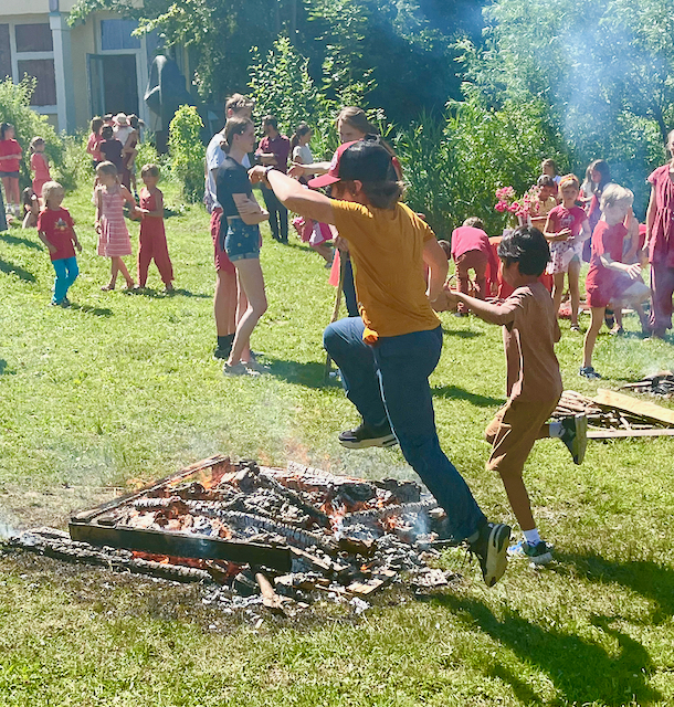 In der Waldorfpädagogik symbolisiert das Johannifest genau diesen Übergang: von der äußeren Aktivität zur inneren Reife, vom Licht der Sonne zum Licht in uns selbst. Es ist ein Fest des Mutes, der Wandlung und der Eigenverantwortung. Die Kinder erleben diese Themen in symbolischen Handlungen – ganz besonders durch das Springen über das Feuer.