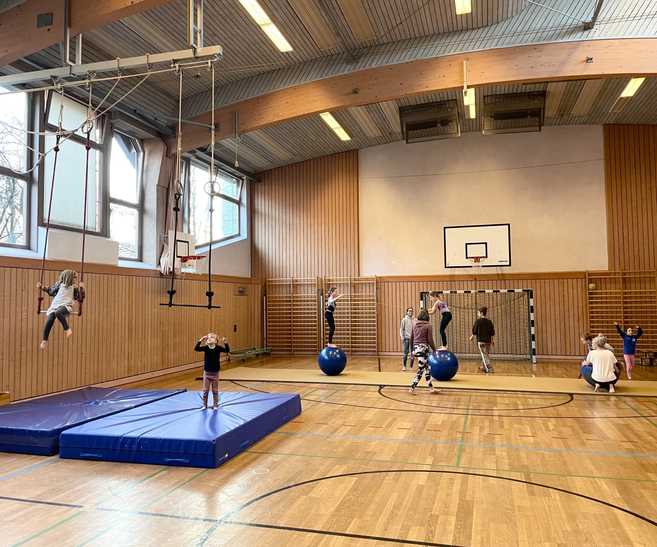 Kinder und Eltern sind in die bunte Welt des Circus eingetaucht! Das gemeinsame Entdecken von Fähigkeiten stand dabei im Vordergrund: