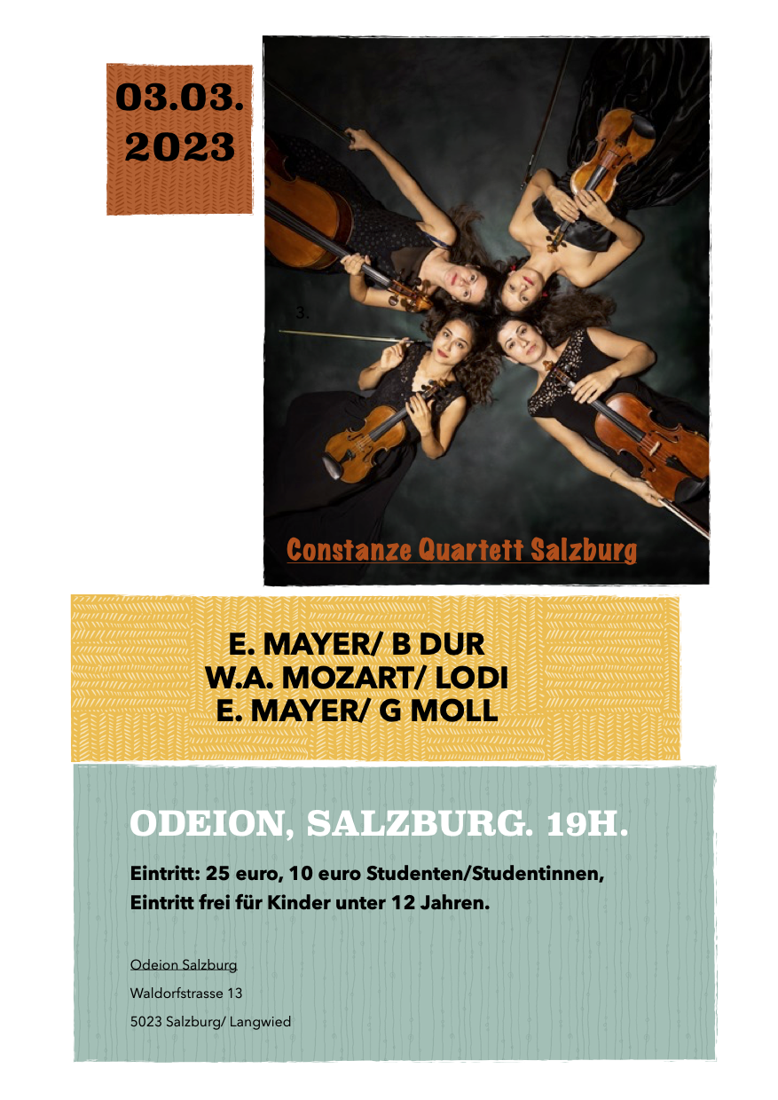 Odeïon Salzburg Waldorfstrasse 13, Salzburg, ÖsterreichE. MAYER/ B DUR W.A. MOZART/ LODI E. MAYER/ G MOLL