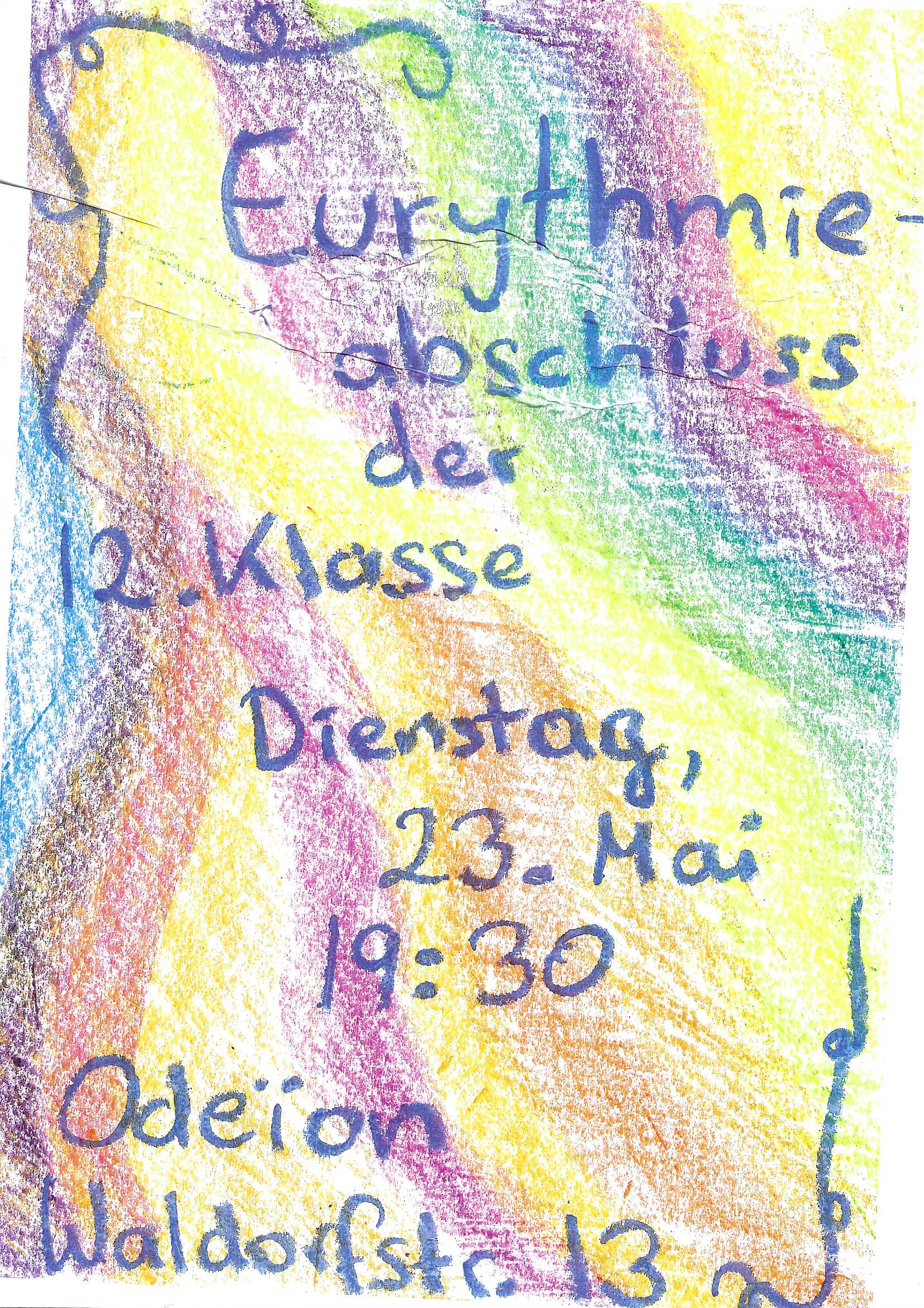 Einführung in die Waldorfpädagogik Herzlich laden wir alle an der Waldorfpädagogik interessierte Eltern zur Studiengruppe ein. Im offenen Gespräch und mit Eurythmie wollen wir uns die Vorträge Rudolf Steiners „Die Pädagogische Praxis“ erarbeiten (Texte stehen zur Verfügung). Jeweils Mittwoch 19:00 – 20:30 im Eurythmieraum der Rudolf Steiner Schule: 9.Okt., 23.Okt., 6.Nov., 20.Nov., 4.Dez. Bitte um